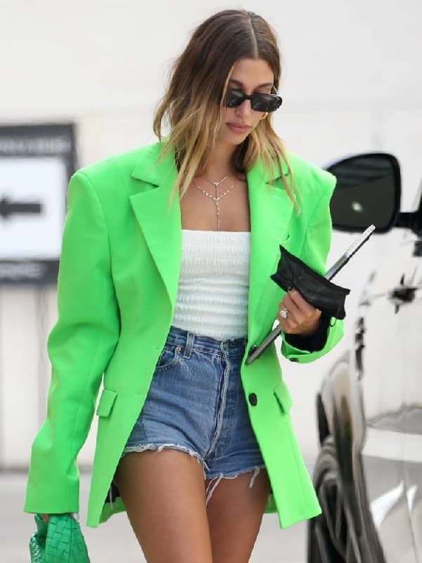 American Model Hailey Bieber Bright Green Blazer