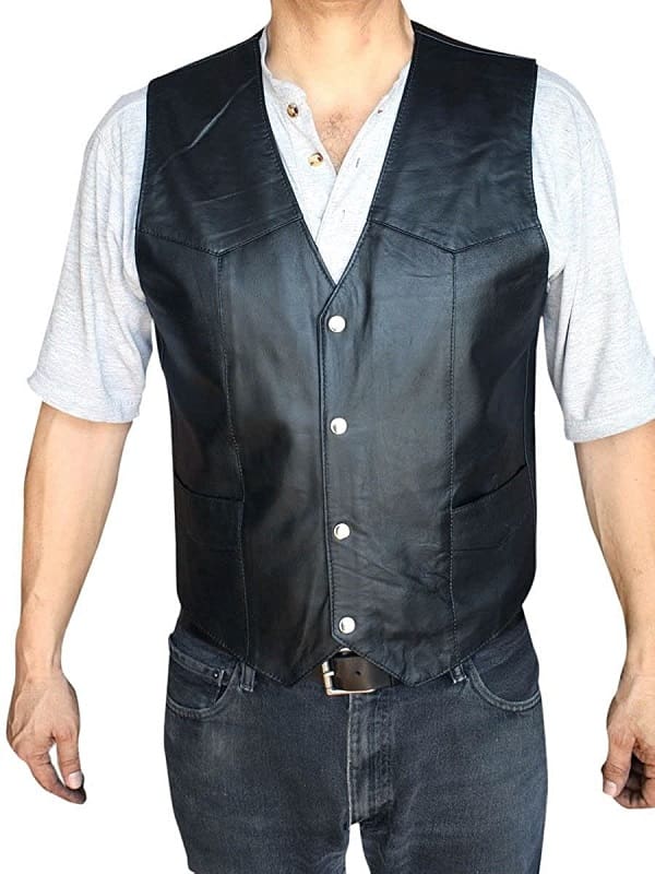 Men’s Motorcycle Soft Leather Black Vest