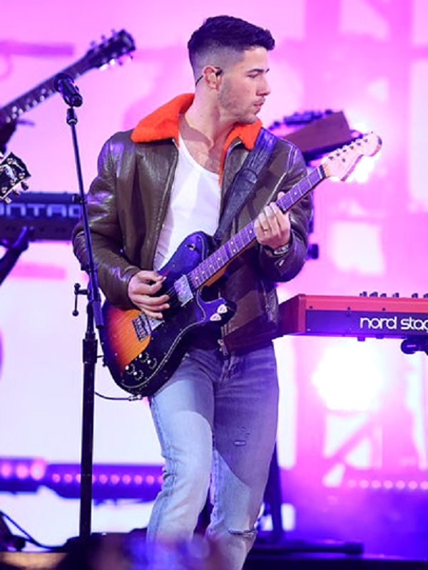Nick Jonas Orange Fur Collar Brown leather Jacket