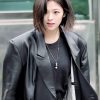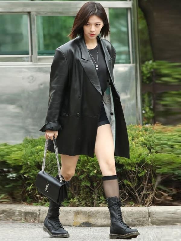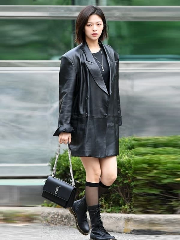 South Korean singer Jeongyeon Leather Coat